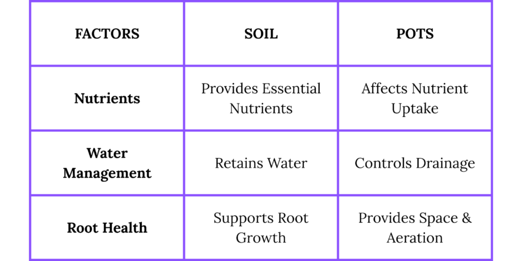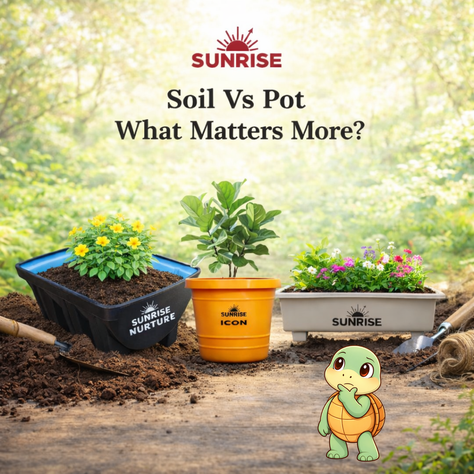 Soil is the food for your plants – it is packed with essential nutrients, water, and support for the roots to grow. Imagine soil as a buffet where plants pick what they need to flourish. But here’s the truth: soil alone is not enough. The plant’s growth is equally dependent on its home – the pot!