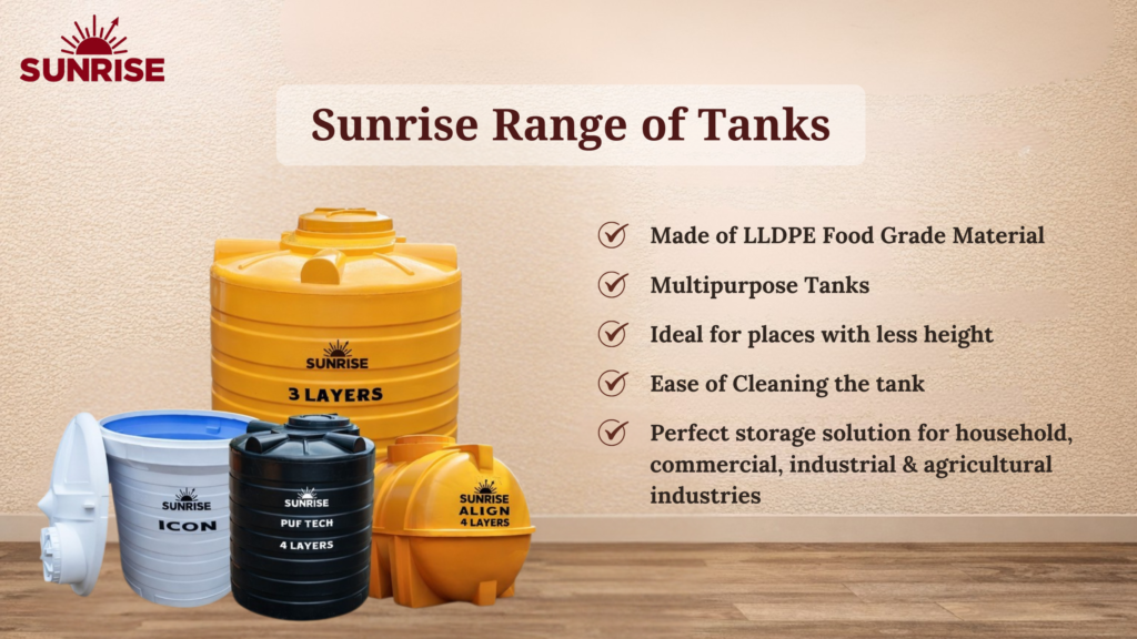 The entire range of Sunrise tanks are designed keeping the practical use in mind, so it is easy for the customer to use it later. These tanks offer a perfect balance between the tank’s reliability, usage, its price & durability.